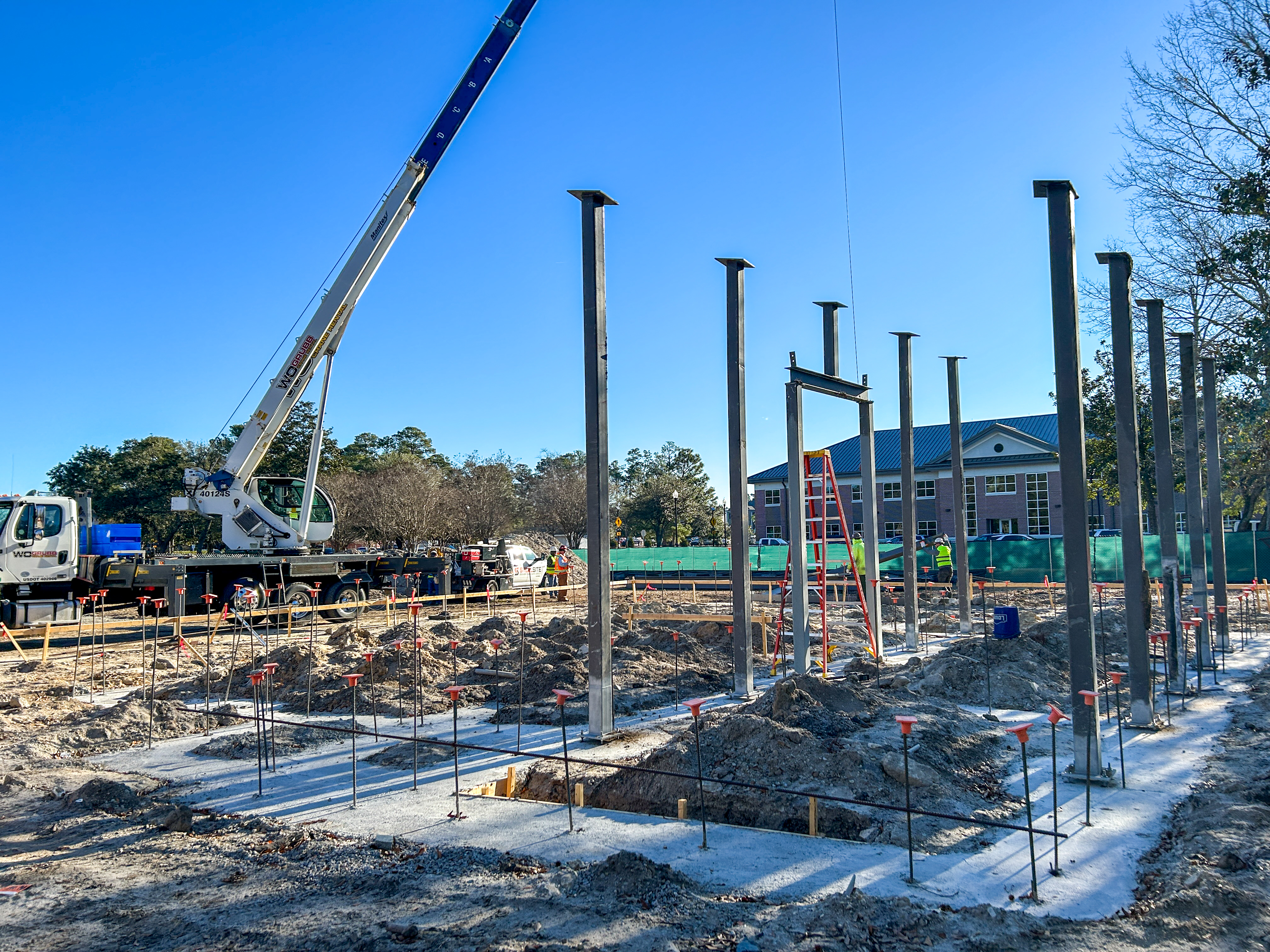 Over the last several weeks, crews have been reinstalling building footers and have now begun the erection of structural steel. This process will take several days, after which the focus will shift to masonry installation and the rough-in of both electrical and mechanical components.